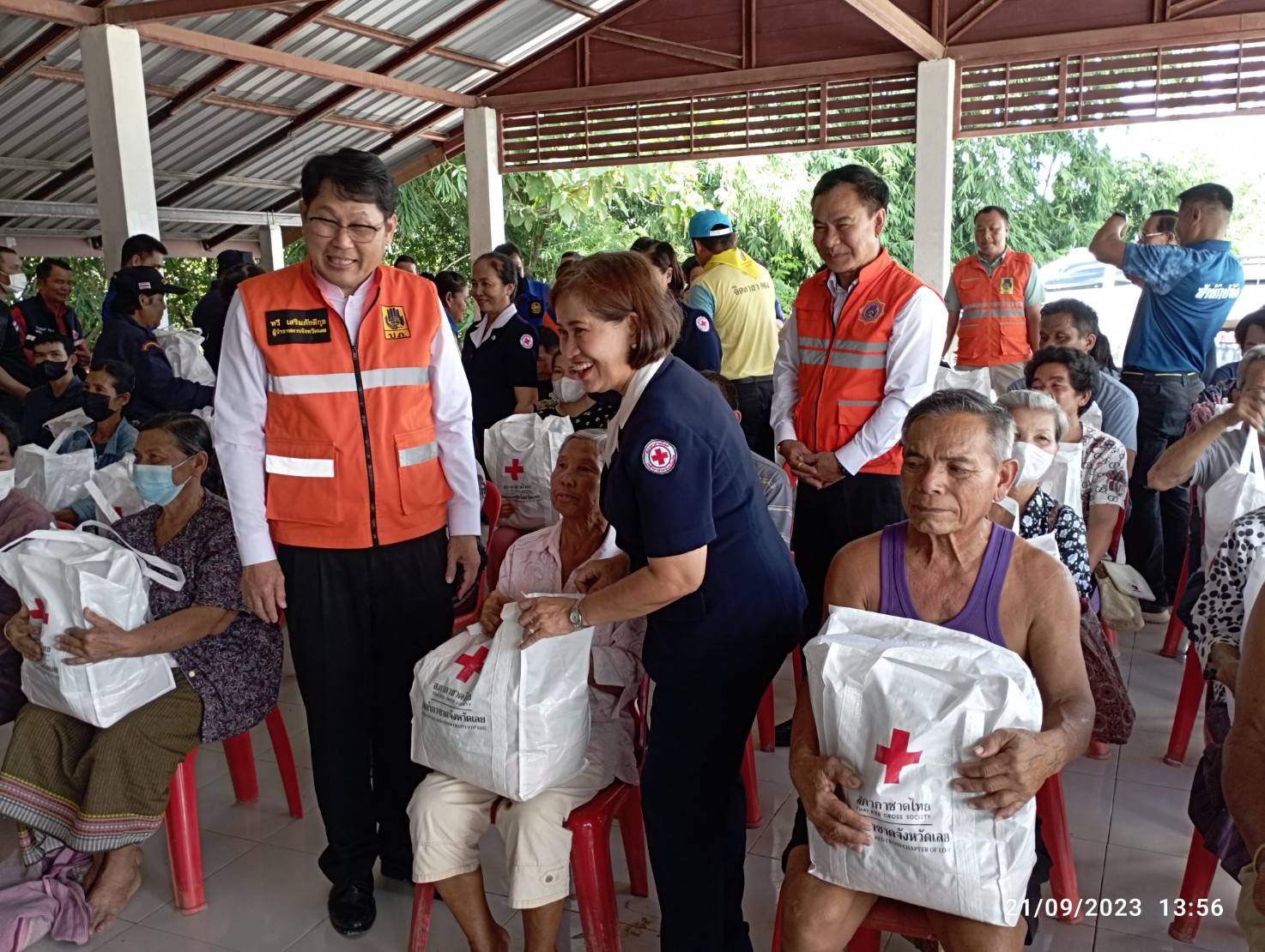 ร่วมมอบถุงยังชีพให้กับผู้ประสบอุทกภัย ร่วมกับเหล่ากาชาดจังหวัดเลย ณ ศาลากลางบ้าน หมู่ที่ 6 ตำบลศรีสงคราม อำเภอวังสะพุง จังหวัดเลย