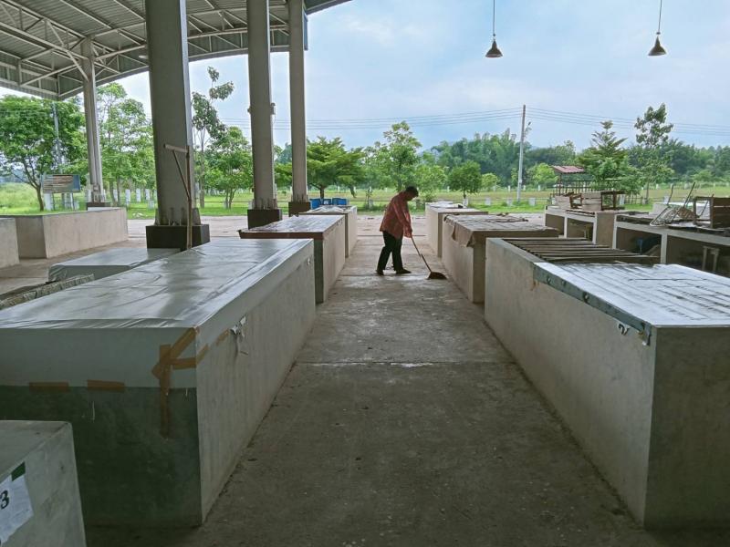 ทำความสะอาดอาคารศูนย์ผลิตภัณฑ์โอทอปและจำหน่ายสินค้าทางการเกษตร (ประจำเดือนมีนาคม และเมษายน 2568)
