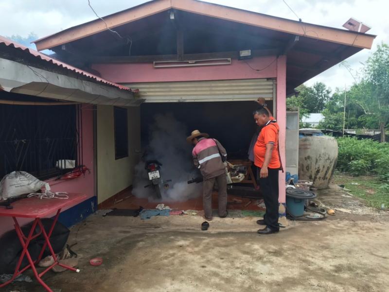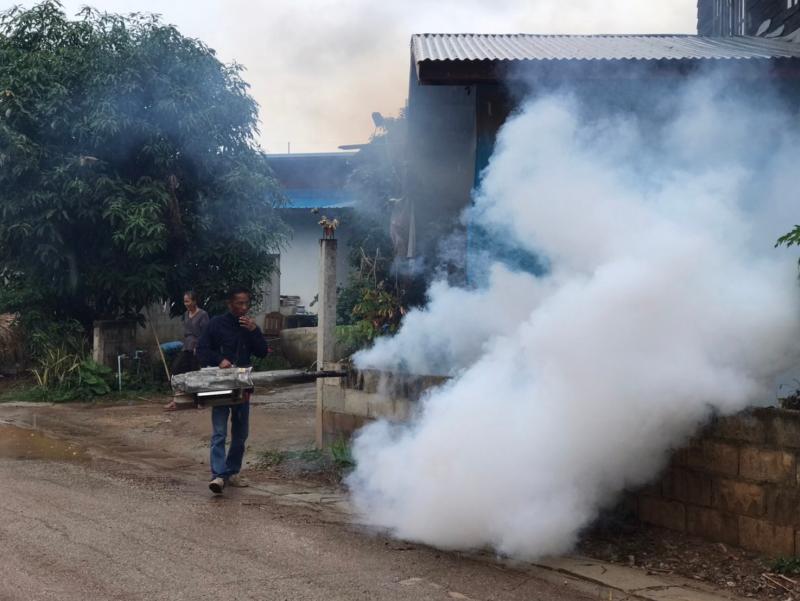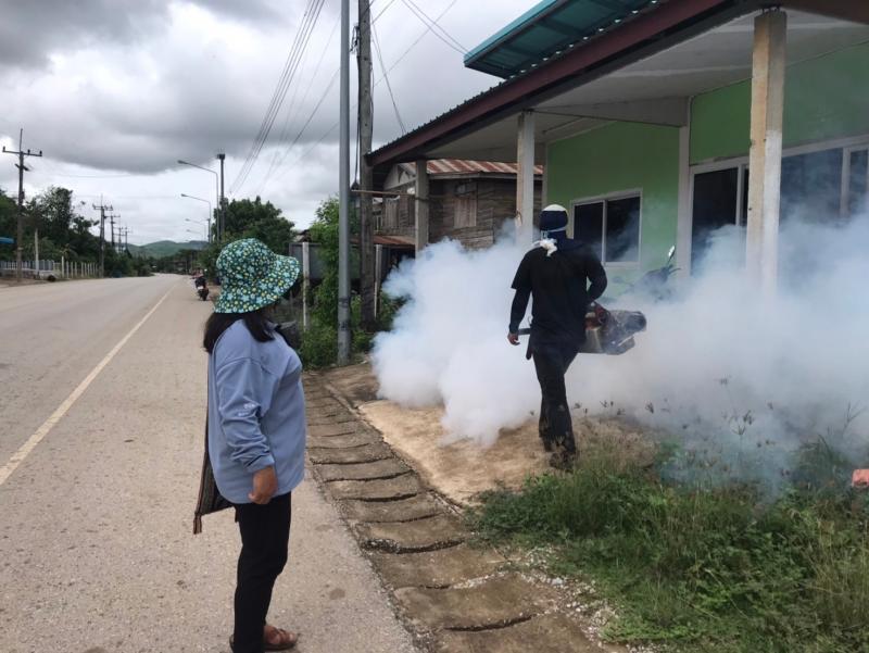 งานสาธารณสุขและสิ่งแวดล้อม ลงพื้นที่ฉีดพ่นหมอกควันควบคุมและป้องกันโรคไข้เลือดออก ตามโครงการควบคุมและป้องกันโรคไข้เลือดออกในเขตเทศบาลตำบลศรีสงคราม ปีงบประมาณ 2567 ณ บ้านไทยเจริญ หมู่ที่ 10