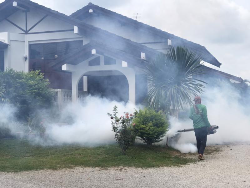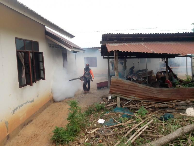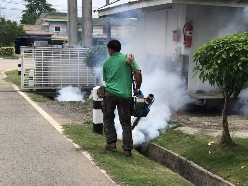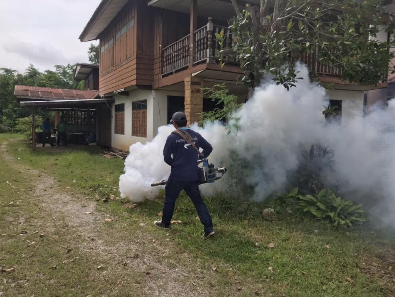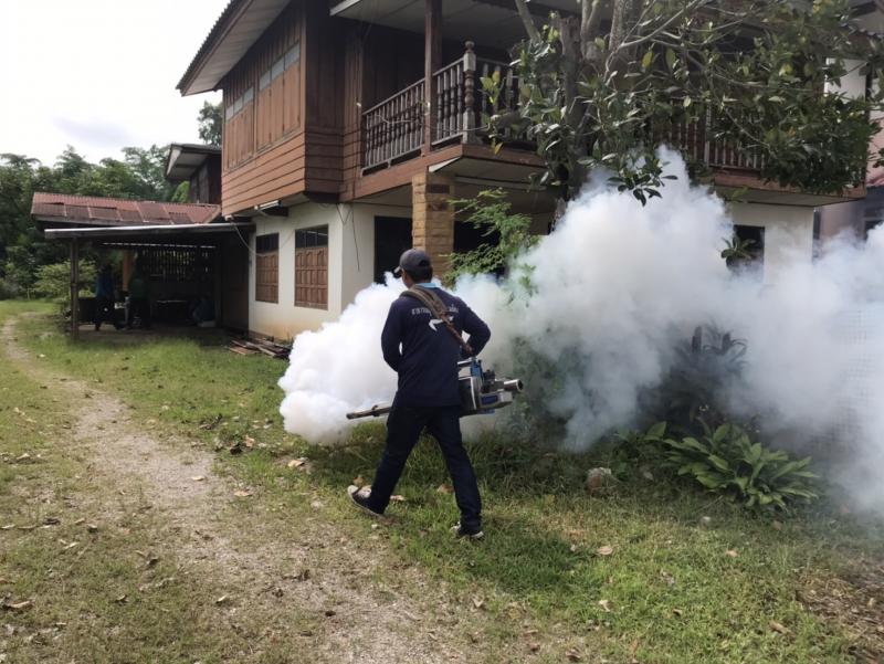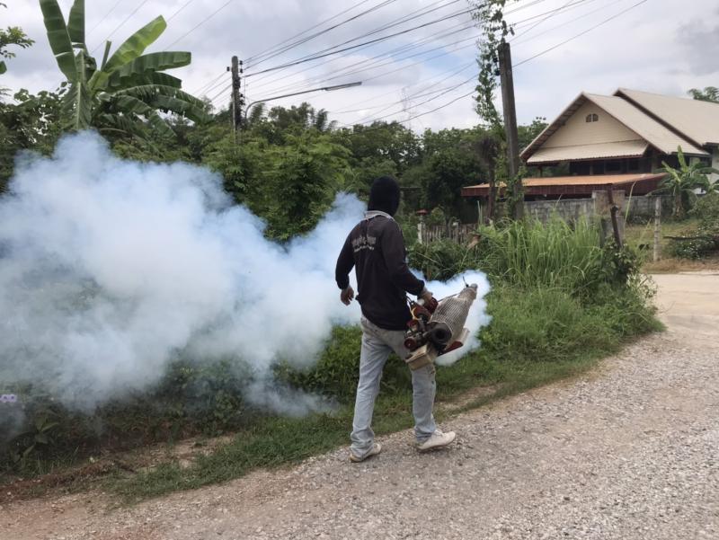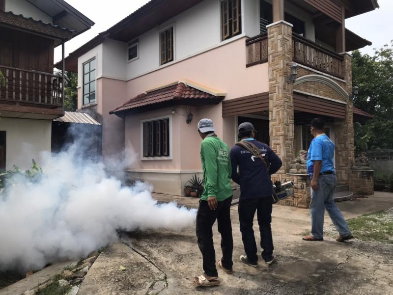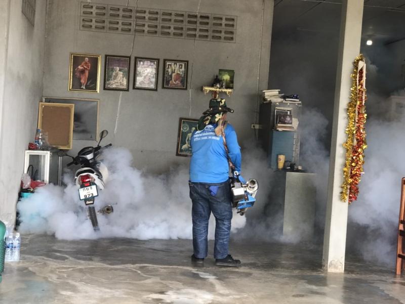 งานสาธารณสุขและสิ่งแวดล้อม ลงพื้นที่ฉีดพ่นหมอกควันควบคุมและป้องกันโรคไข้เลือดออก ตามโครงการควบคุมและป้องกันโรคไข้เลือดออกในเขตเทศบาลตำบลศรีสงคราม ปีงบประมาณ 2568 ณ บ้านศรีสงคราม หมู่ที่ 11