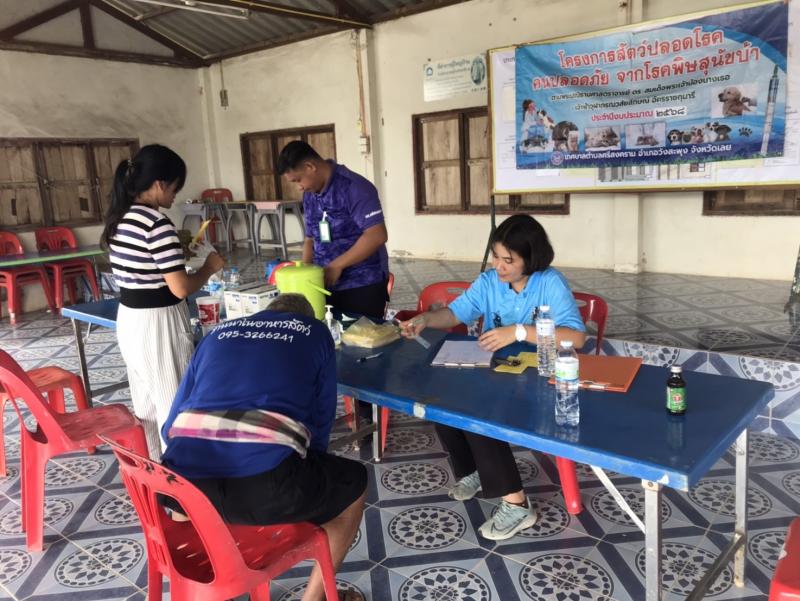 งานสาธารณสุขและสิ่งแวดล้อม ลงพื้นที่ฉีดวัคซีนป้องกันโรคพิษสุนัขบ้าในสุนัขและแมว ณ บ้านโนนสว่าง หมู่ที่ 3 และบ้านดงน้อย หมู่ที่ 8 ตำบลศรีสงคราม อำเภอวังสะพุง จังหวัดเลย