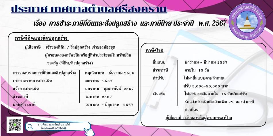 ประกาศ การชำระภาษีที่ดินและสิ่งปลูกสร้าง และภาษีป้าย ประจำปี พ.ศ. 2567 [2 พฤศจิกายน 2566]