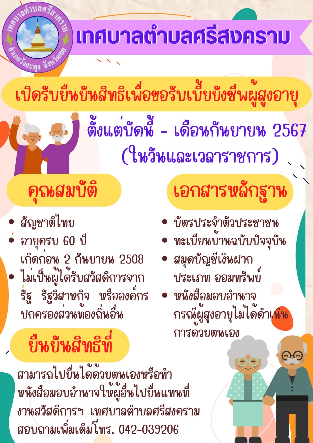 เปิดรับยืนยันสิทธิ์เพื่อรับเบี้ยยังชีพผู้สูงอายุ ตั้งแต่บัดนี้ - เดือนกันยายน