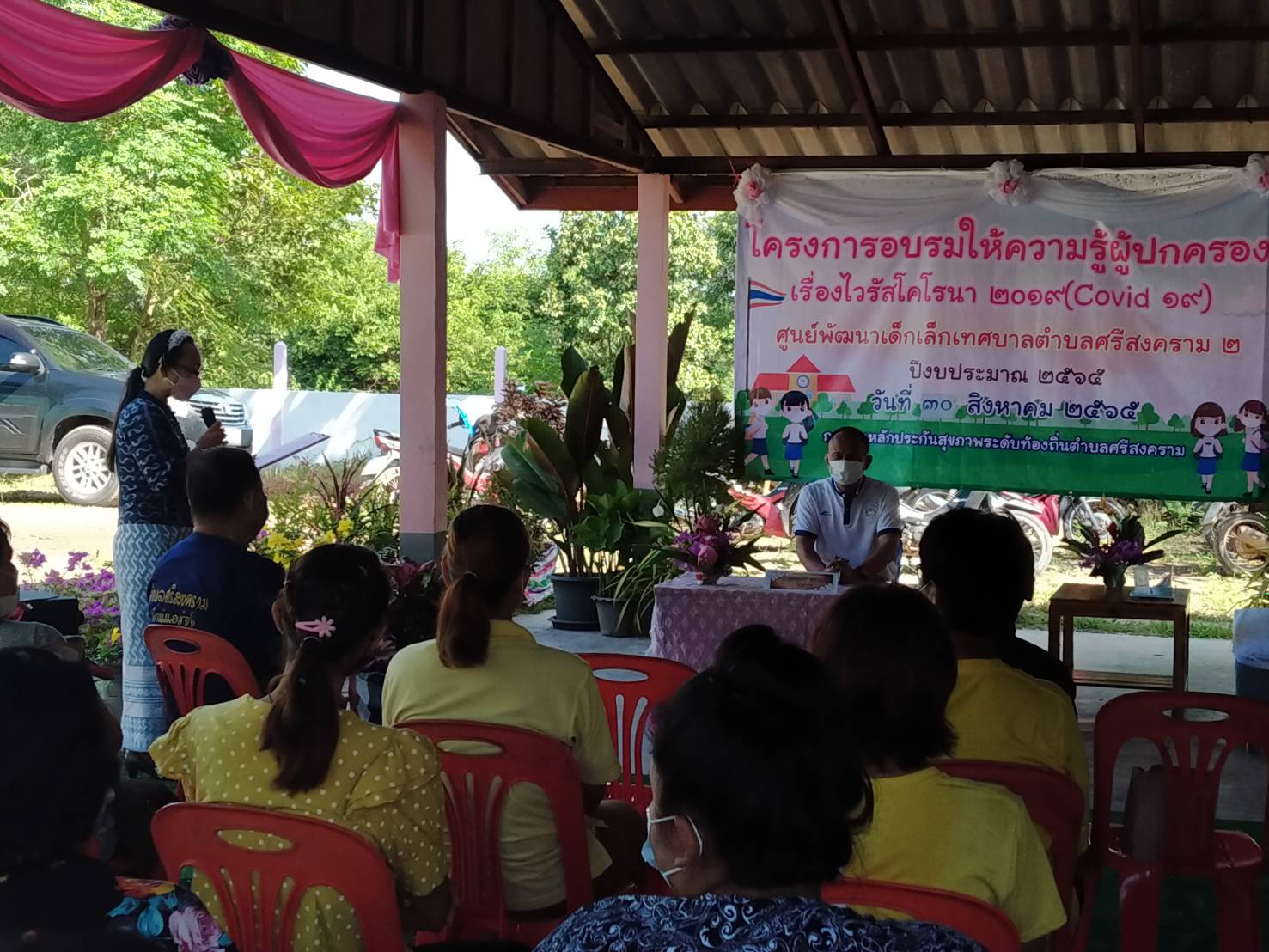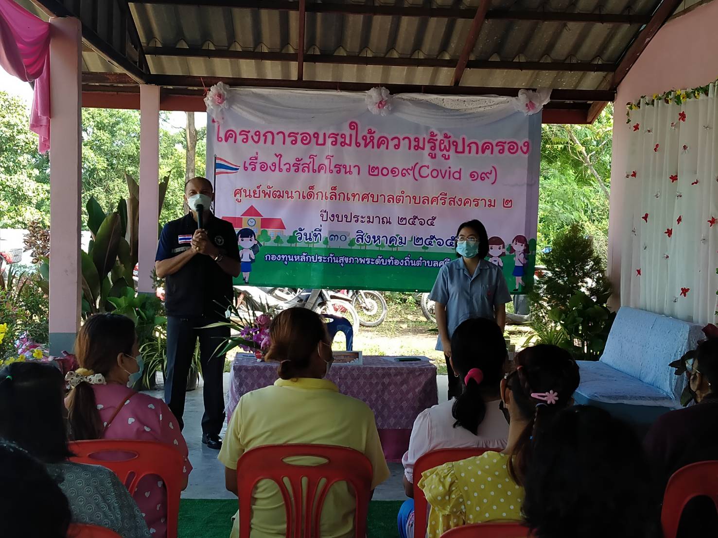 วันที่ 30 สิงหาคม 2565 นายธงฤทธิ์ จำศักดิ์ รองนายกเทศมนตรีตำบลศรีสงคราม เป็นประธานเปิดโครงการอบรมให้ความรู้ผู้ปกครอง เรื่องไวรัสโคโรนา 2019 ( COVID -19 ) ณ ศูนย์พัฒนาเด็กเล็กเทศบาลตำบลศรีสงคราม 2 อำเภอวังสะพง จังหวัดเลย