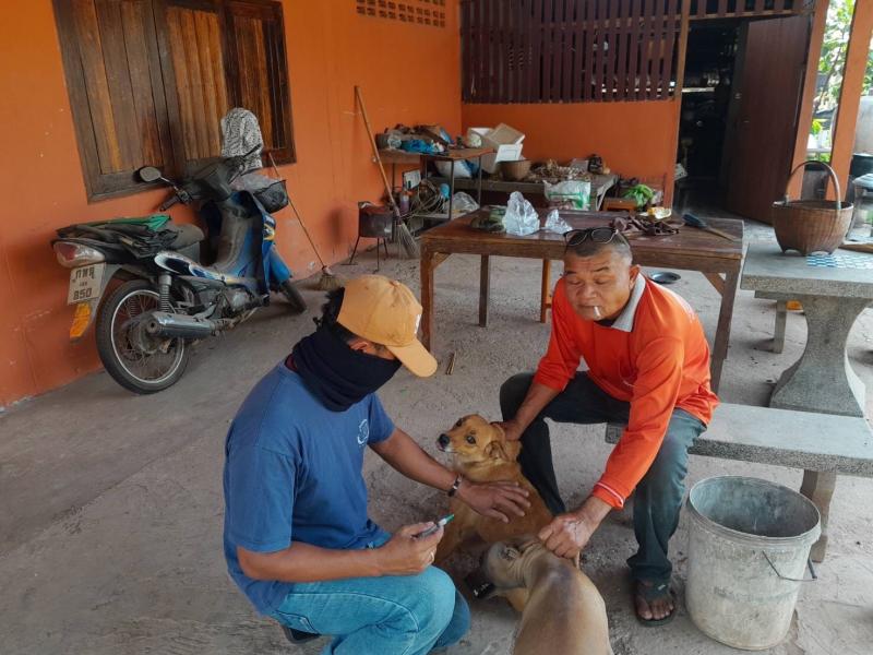 งานสาธารณสุขและสิ่งแวดล้อม ลงพื้นที่ฉีดวัคซีนป้องกันโรคพิษสุนัขบ้าในสุนัขและแมว ณ บ้านโนนสว่าง หมู่ที่ 3 และบ้านดงน้อย หมู่ที่ 8 ตำบลศรีสงคราม อำเภอวังสะพุง จังหวัดเลย