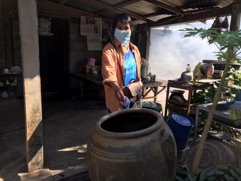 งานสาธารณสุขและสิ่งแวดล้อม ฉีดพ่นหมอกควันควบคุมและป้องกันโรคไข้เลือดออก รัศมีรอบๆ 100 เมตร จากบ้านผู้ป่วย ณ บ้านดงน้อย หมู่ที่ 8