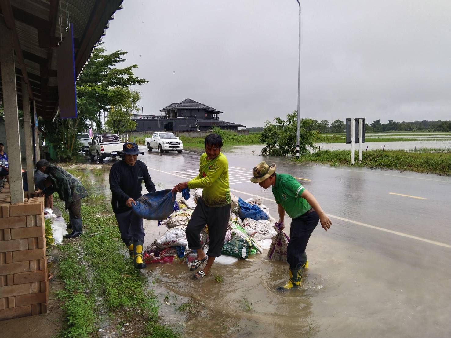 ลงพื้นที่ดำเนินการ นำกระสอบทรายมาทำแนวกั้นน้ำ ไม่ให้ไหลท่วมบ้านเรือนของประชาชน หมู่ที่ 6 บ้านบุ่งกกตาล ตำบลศรีสงคราม อำเภอวังสะพุง จังหวัดเลย