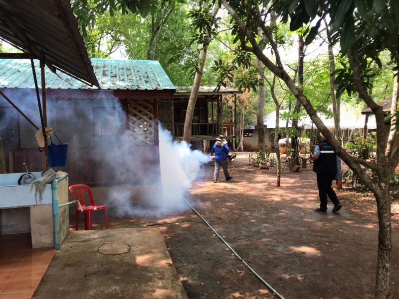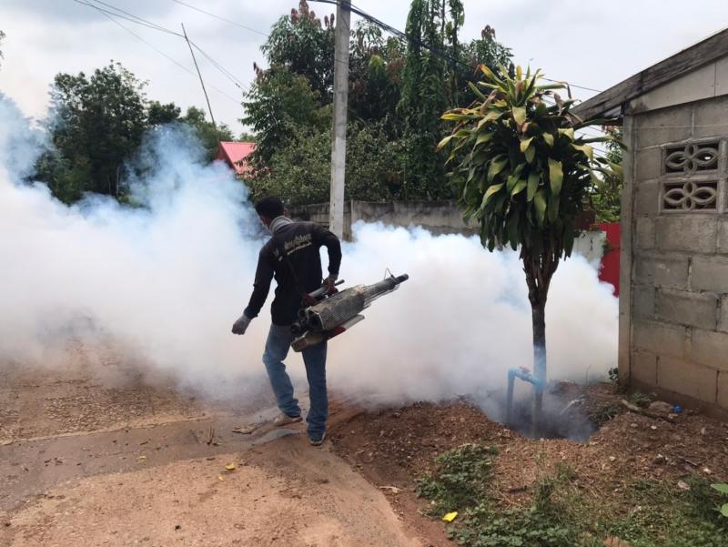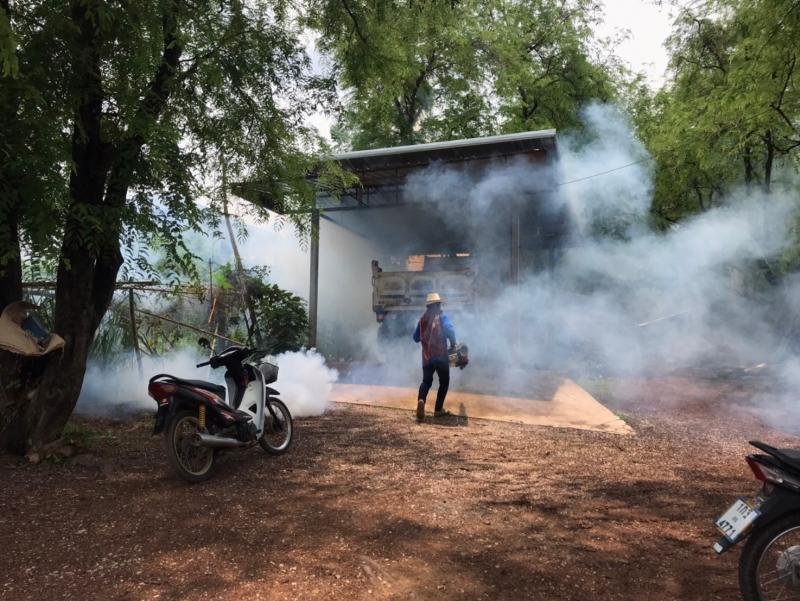งานสาธารณสุขและสิ่งแวดล้อม ลงพื้นที่ฉีดพ่นหมอกควันควบคุมและป้องกันโรคไข้เลือดออก ตามโครงการควบคุมและป้องกันโรคไข้เลือดออกในเขตเทศบาลตำบลศรีสงคราม ปีงบประมาณ 2567 ณ บ้านโนนสว่าง และโรงเรียนบ้านโนนสว่าง หมู่ที่ 3