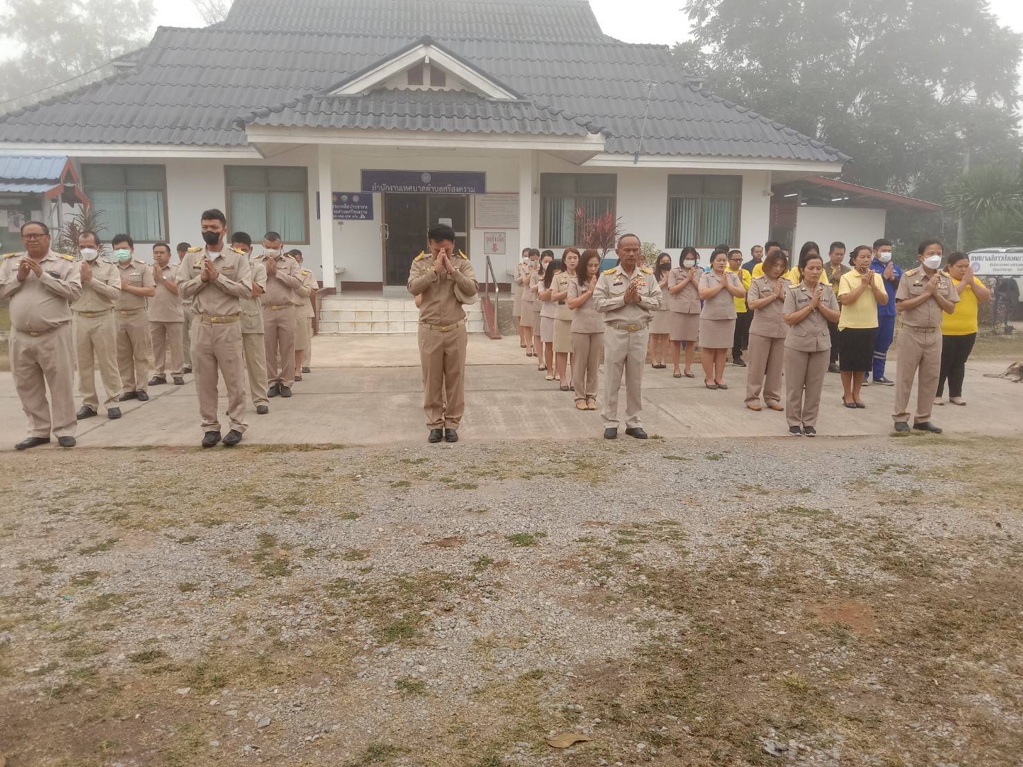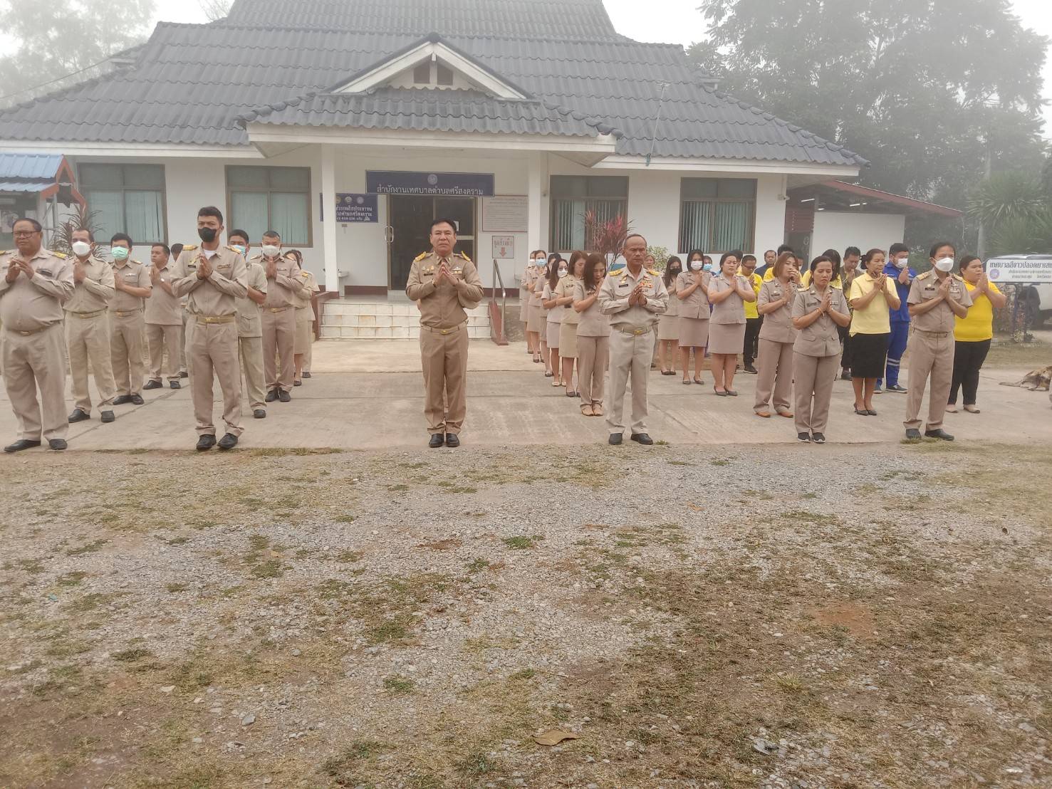 description วันที่ 6 กุมภาพันธ์ 2566 นายวุฒิชัย มัธยัสถ์สิน นายกเทศมนตรีตำบลศรีสงคราม พร้อมด้วยคณะผู้บริหาร ข้าราชการ และลูกจ้างเทศบาลตำบลศรีสงคราม เข้าแถวเคารพธงชาติ สวดมนต์ไหว้พระ ณ บริเวณเสาธงหน้าสำนักงานเทศบาลตำบลศรีสงคราม ก่อนเริ่มปฏิบัติหน้าที่ person admin