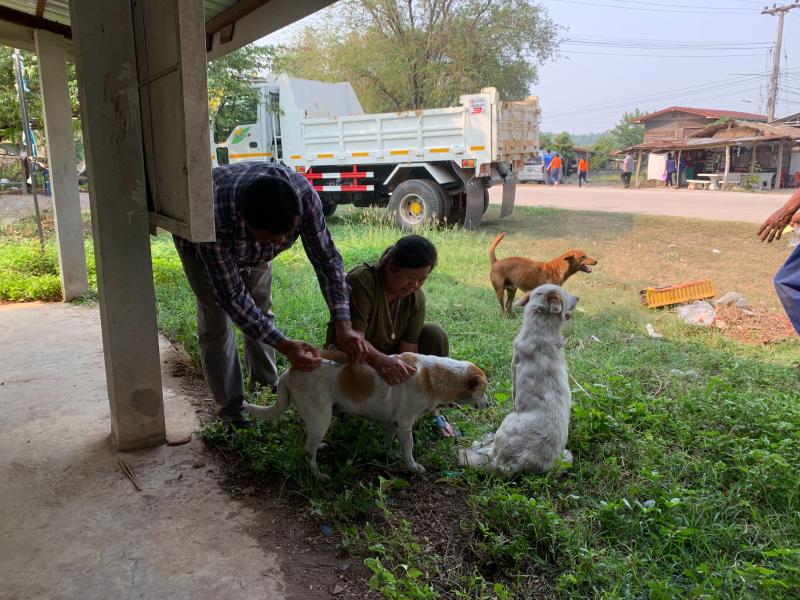งานสาธารณสุขและสิ่งแวดล้อม ลงพื้นที่ฉีดวัคซีนป้องกันโรคพิษสุนัขบ้าในสุนัขและแมว ณ บ้านฟากเลย หมู่ที่ 4 และบ้านโคกหนองแก หมู่ที่ 9 ตำบลศรีสงคราม อำเภอวังสะพุง จังหวัดเลย
