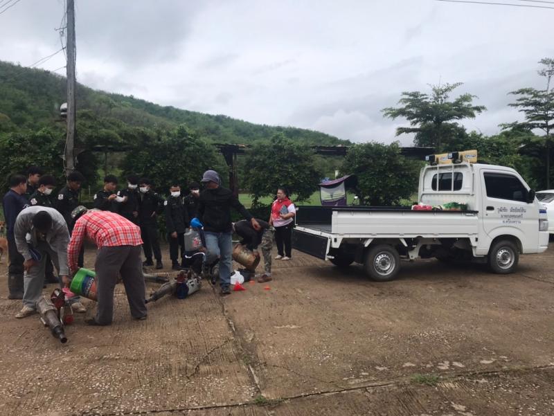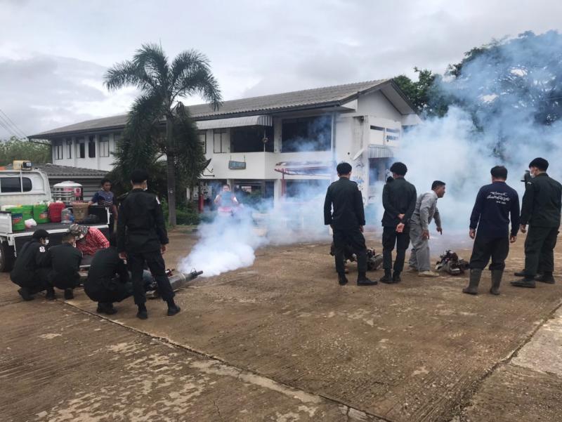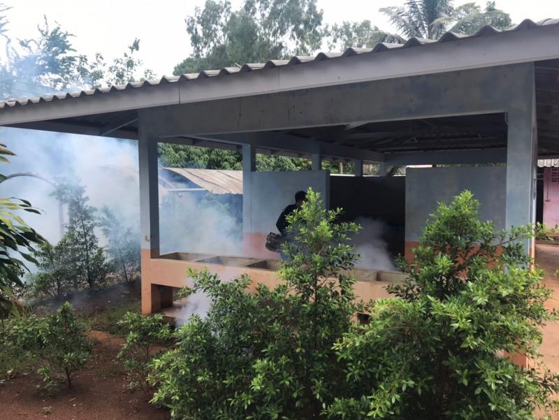 งานสาธารณสุขและสิ่งแวดล้อม ลงพื้นที่ฉีดพ่นหมอกควันควบคุมและป้องกันโรคไข้เลือดออก ตามโครงการควบคุมและป้องกันโรคไข้เลือดออกในเขตเทศบาลตำบลศรีสงคราม ปีงบประมาณ 2567 ณ โรงเรียนราชประชานุเคราะห์ 52 จังหวัดเลย