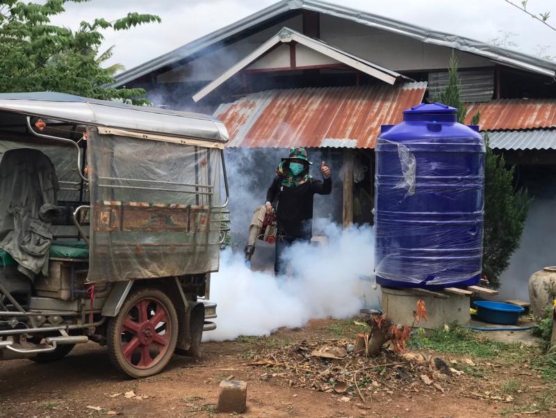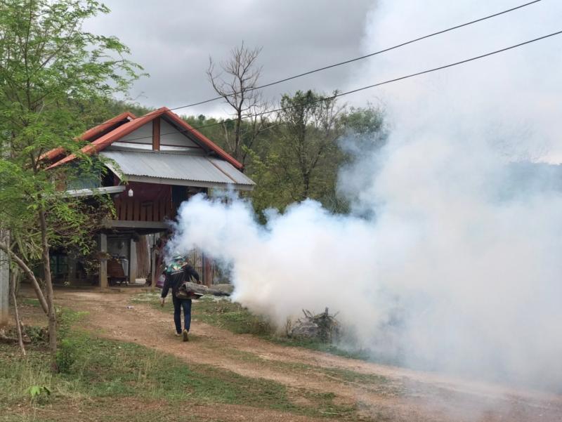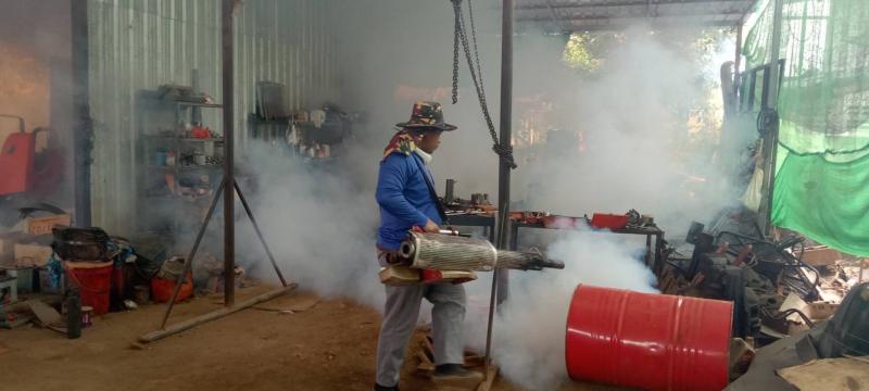 งานสาธารณสุขและสิ่งแวดล้อม ลงพื้นที่ฉีดพ่นหมอกควันควบคุมและป้องกันโรคไข้เลือดออก ตามโครงการควบคุมและป้องกันโรคไข้เลือดออกในเขตเทศบาลตำบลศรีสงคราม ปีงบประมาณ 2567 ณ บ้านศรีสงคราม หมู่ที่ 11