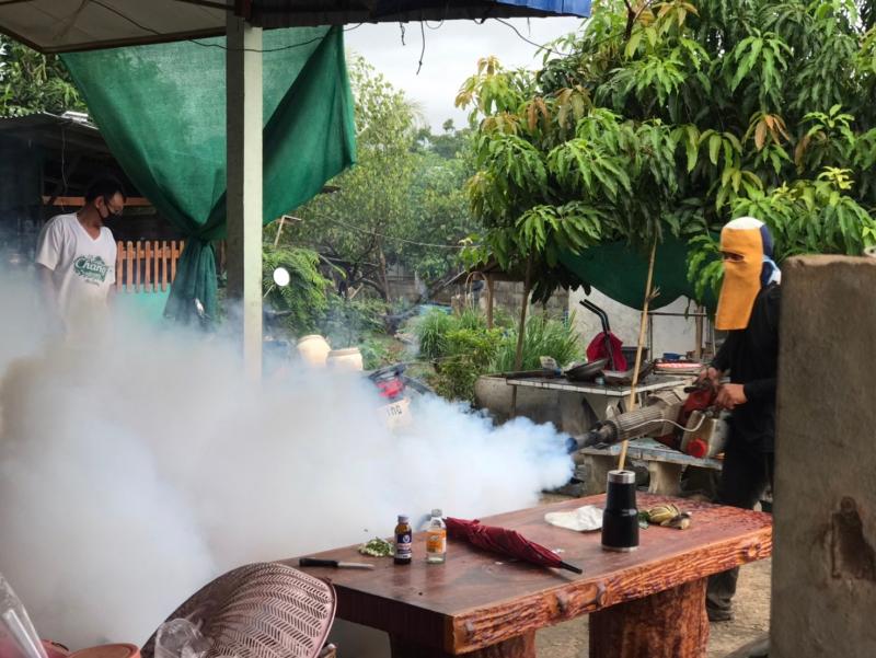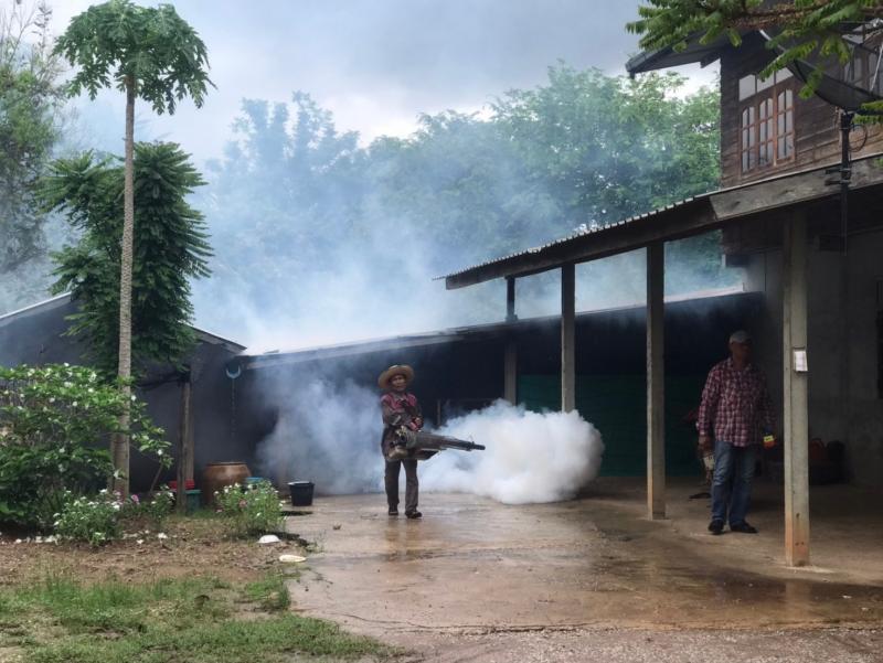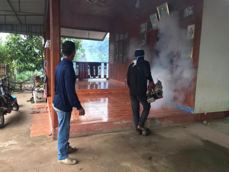 งานสาธารณสุขและสิ่งแวดล้อม ลงพื้นที่ฉีดพ่นหมอกควันควบคุมและป้องกันโรคไข้เลือดออก ตามโครงการควบคุมและป้องกันโรคไข้เลือดออกในเขตเทศบาลตำบลศรีสงคราม ปีงบประมาณ 2567 ณ บ้านไทยเจริญ หมู่ที่ 10