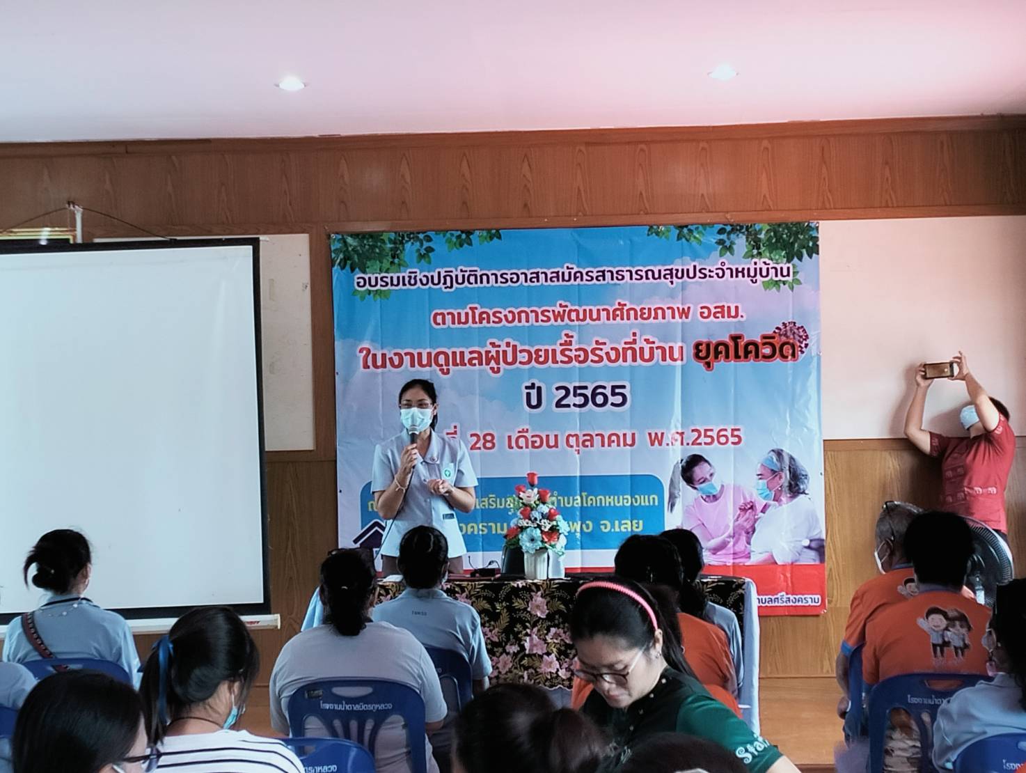 description วันที่ 28 ตุลาคม 2565 นายวุฒิชัย มัธยัสถ์สิน นายกเทศมนตรีตำบลศรีสงคราม มอบหมายให้ นายธงฤทธิ์ จำศักดิ์ รองนายกเทศมนตรีตำบลศรีสงคราม เป็นประธานเปิดโครงการเชิงปฎิบัติการอาสาสมัครสาธารณสุขประจำหมุ่บ้าน ตามโครงการพัฒนาศักยภาพ อสม. ในงานดูแลผู้ป่วยเรื้อรังที่บ้ person admin
