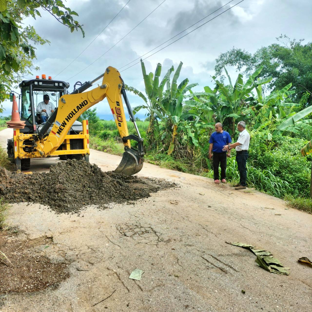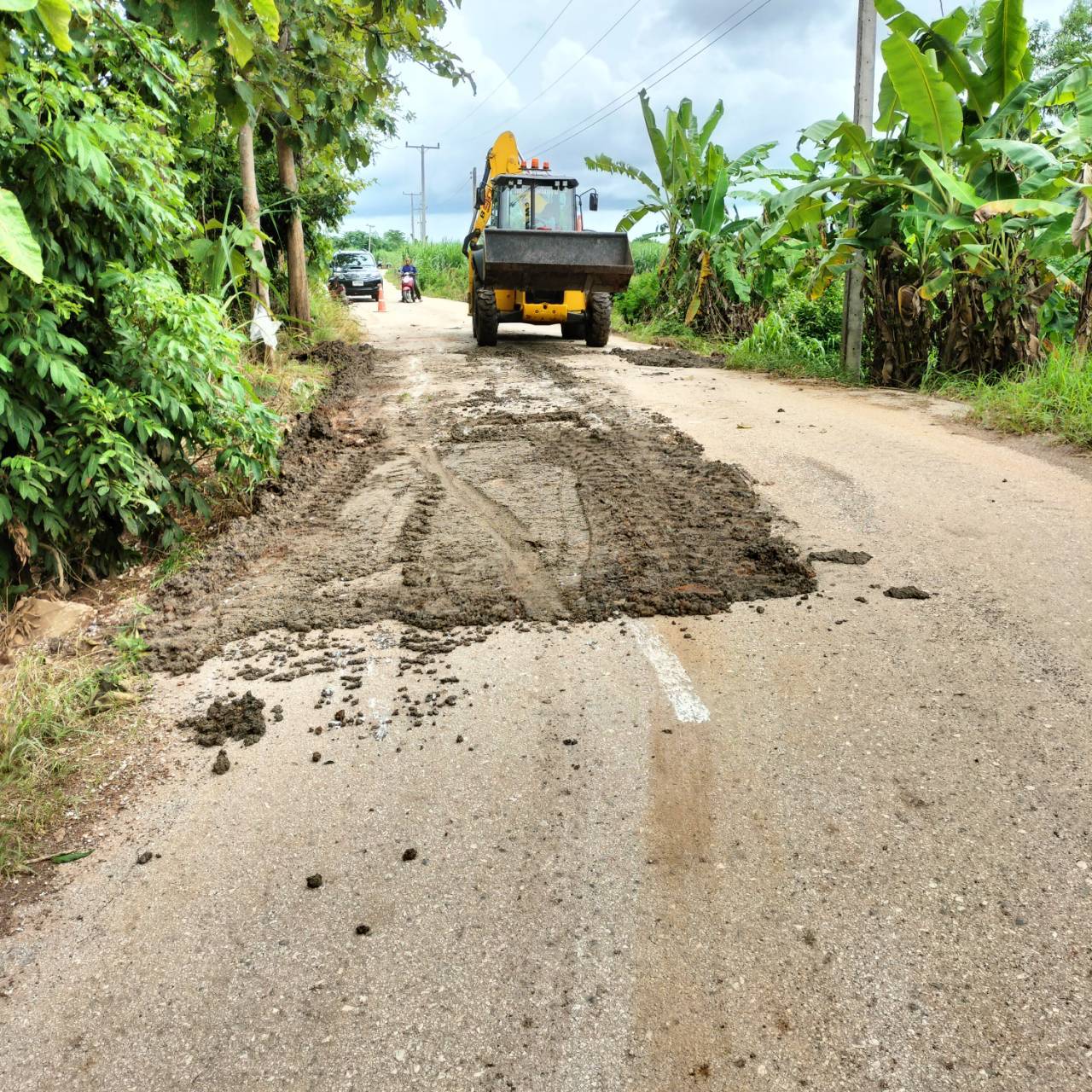ออกสำรวจพื้นที่ที่ได้รับผลกระทบจากฝนตกต่อเนื่อง และดำเนินการแก้ไข ในพื้นที่ถนนเส้นซำร