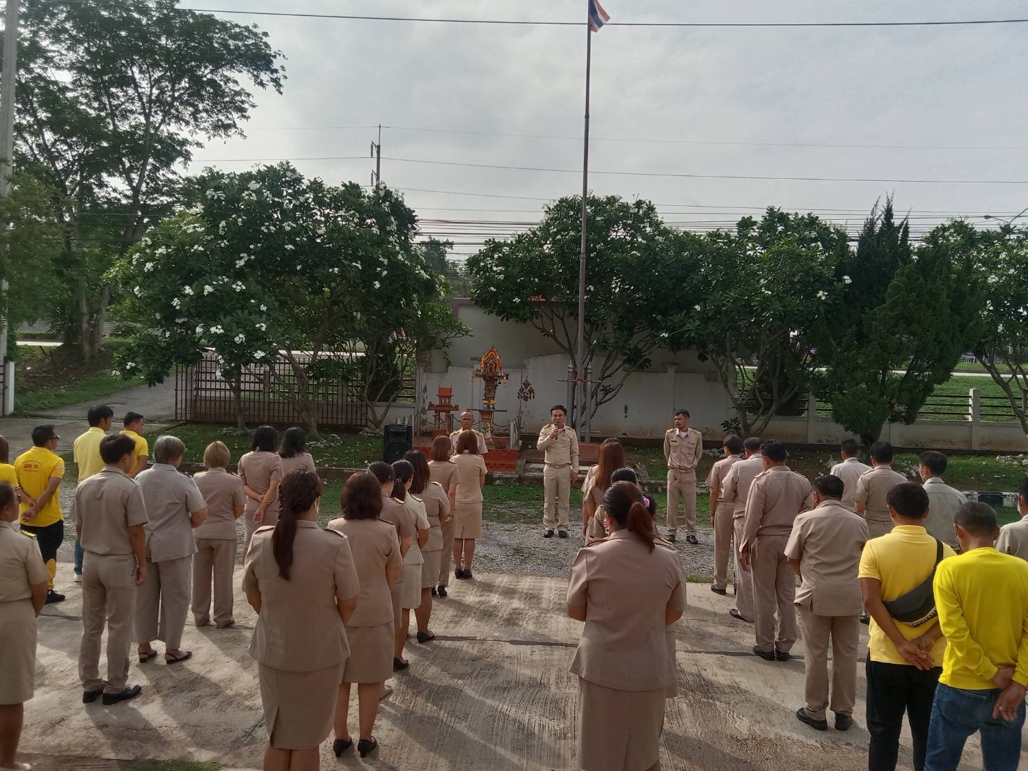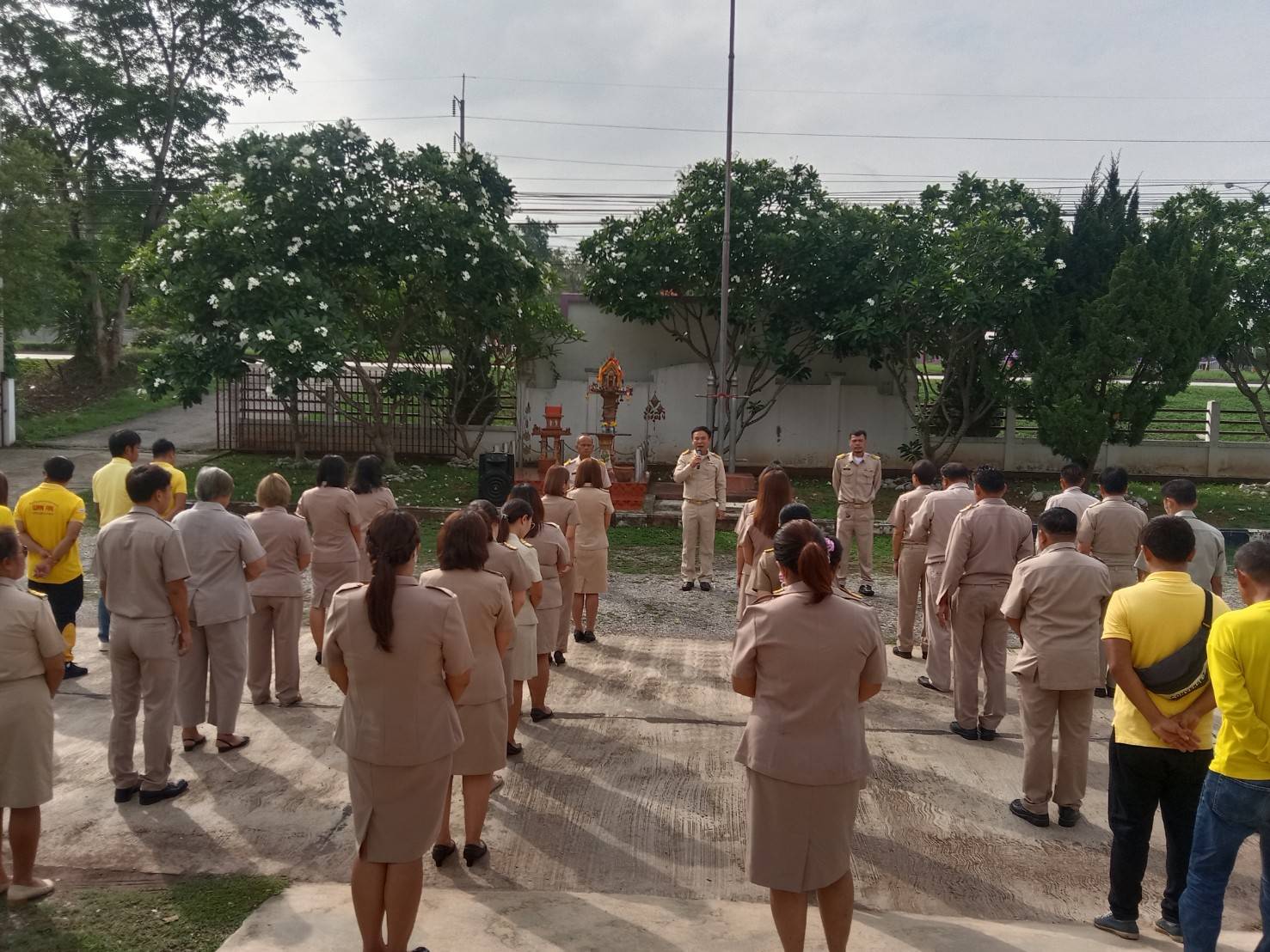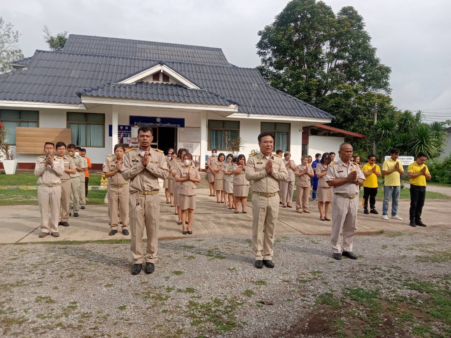 description วันที่ 12 มิถุนายน 2566 นายวุฒิชัย มัธยัสถ์สิน นายกเทศมนตรีตำบลศรีสงคราม พร้อมคณะผู้บริหาร ข้าราชการ และลูกจ้างเทศบาลตำบลศรีสงคราม เข้าแถวเคารพธาติ สวดมนต์ไหว้พระ บริเวณหน้าสำนักงานเทศบาลตำบลศรีสงคราม ก่อนเริ่มปฏิบัติหน้าที่ person admin