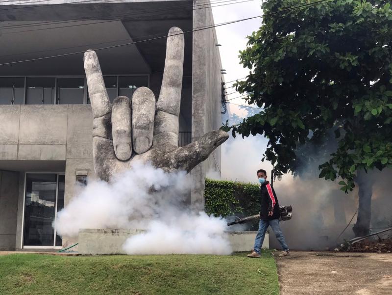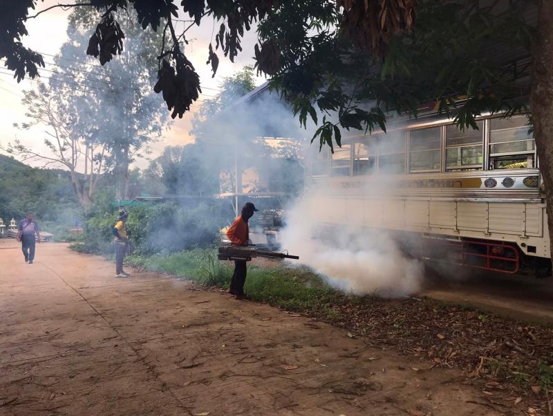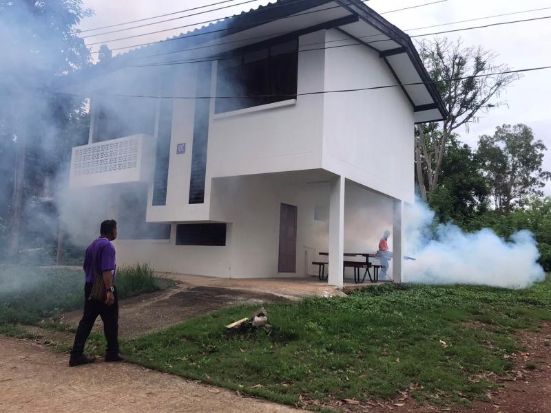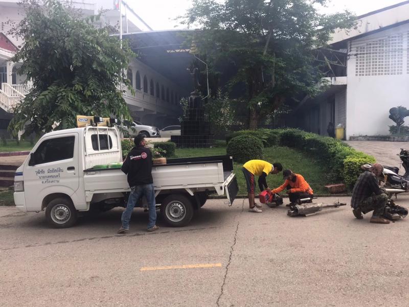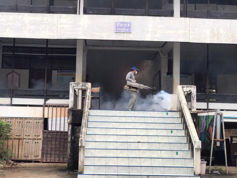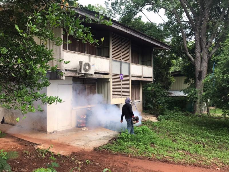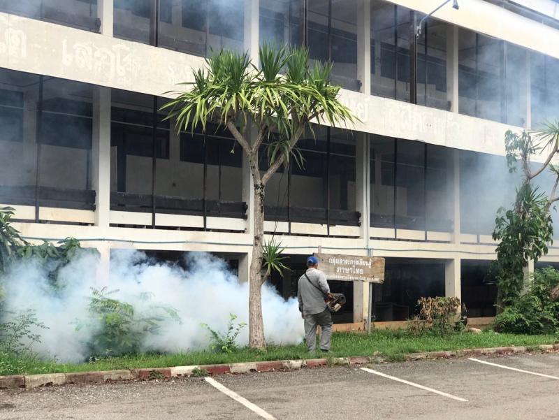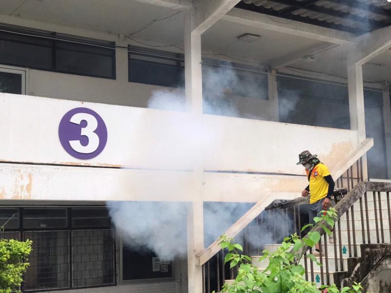 งานสาธารณสุขและสิ่งแวดล้อม ลงพื้นที่ฉีดพ่นหมอกควันควบคุมและป้องกันโรคไข้เลือดออก ตามโครงการควบคุมและป้องกันโรคไข้เลือดออกในเขตเทศบาลตำบลศรีสงคราม ปีงบประมาณ 2567 ณ โรงเรียนศรีสงครามวิทยา