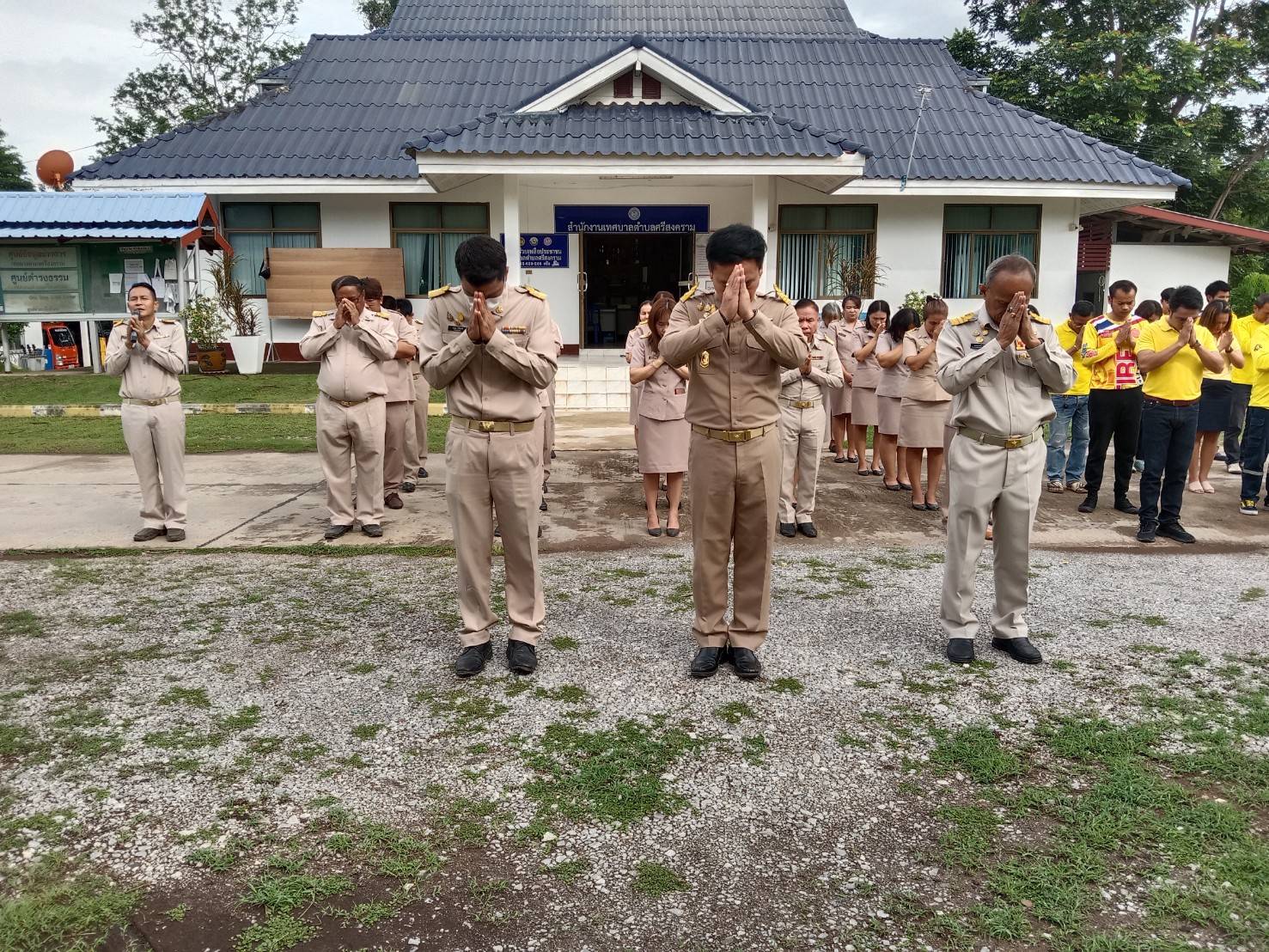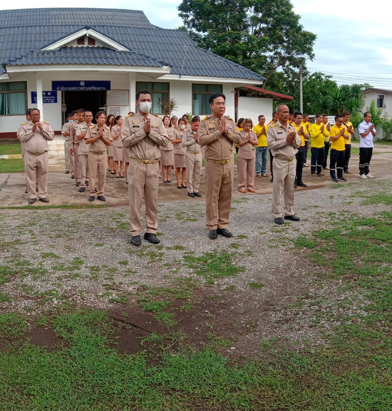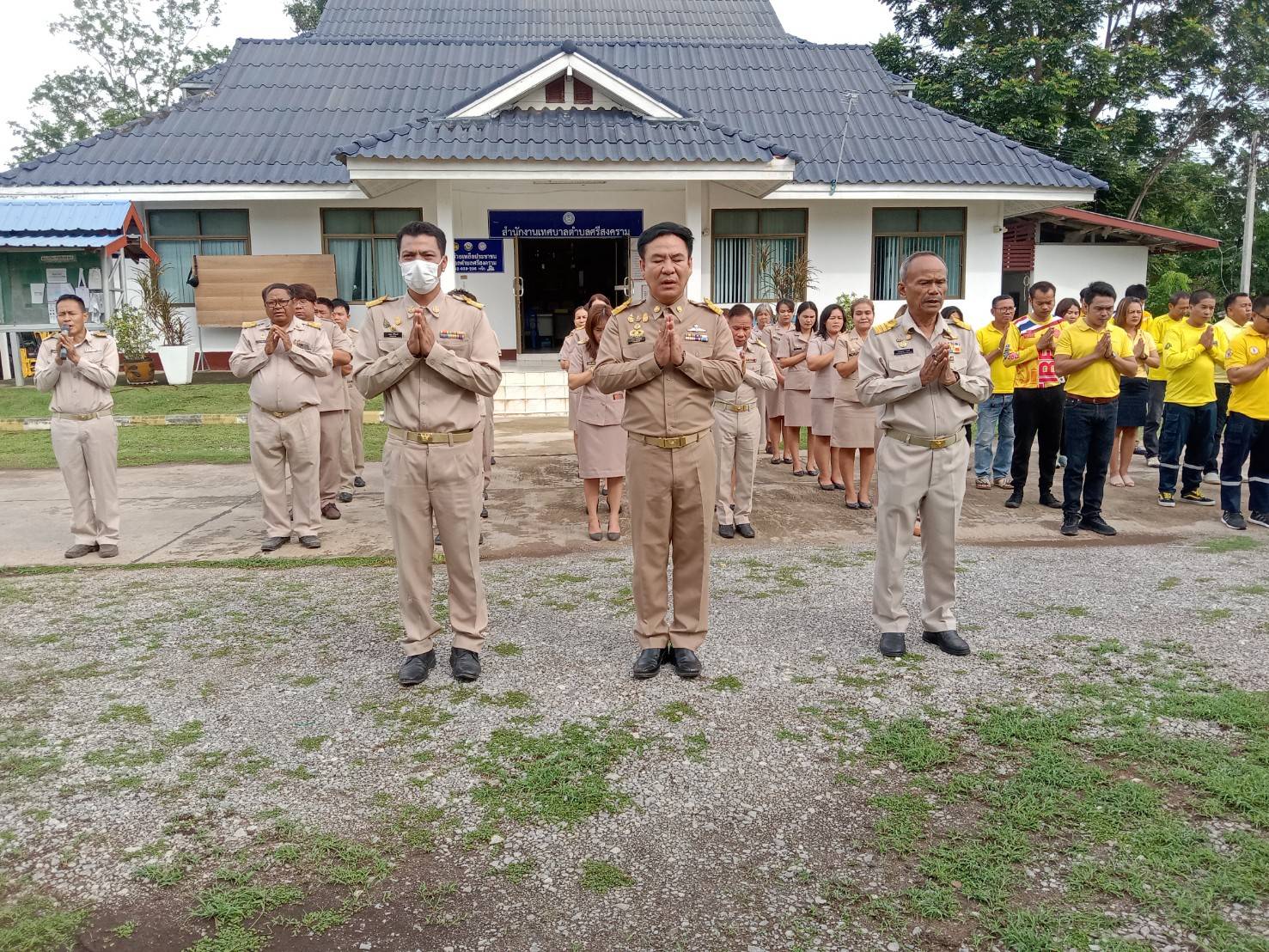description วันที่ 3 กรกฎาคม 2566 นายวุฒิชัย มัธยัสถ์สิน นายกเทศมนตรีตำบลศรีสงคราม พร้อมด้วยคณะผู้บริหาร ข้าราชการ และลูกจ้างเทศบาลตำบลศรีสงคราม เข้าแถวเคารพธงชาติ และสวดมนต์ไหว้พระ ณ บริเวณด้านหน้าำนักงานเทศบาลตำบลศรีสงคราม person admin