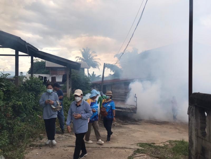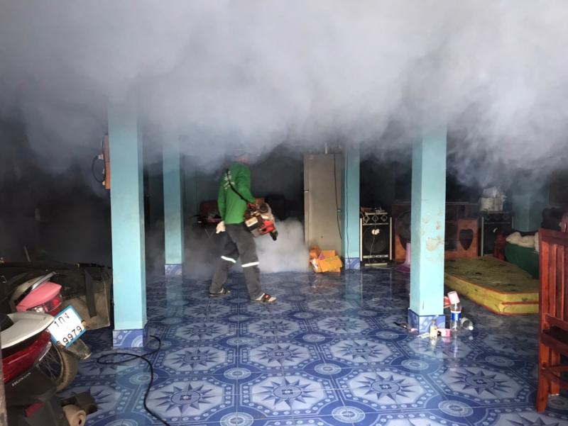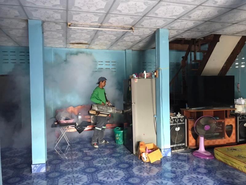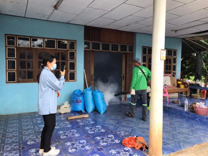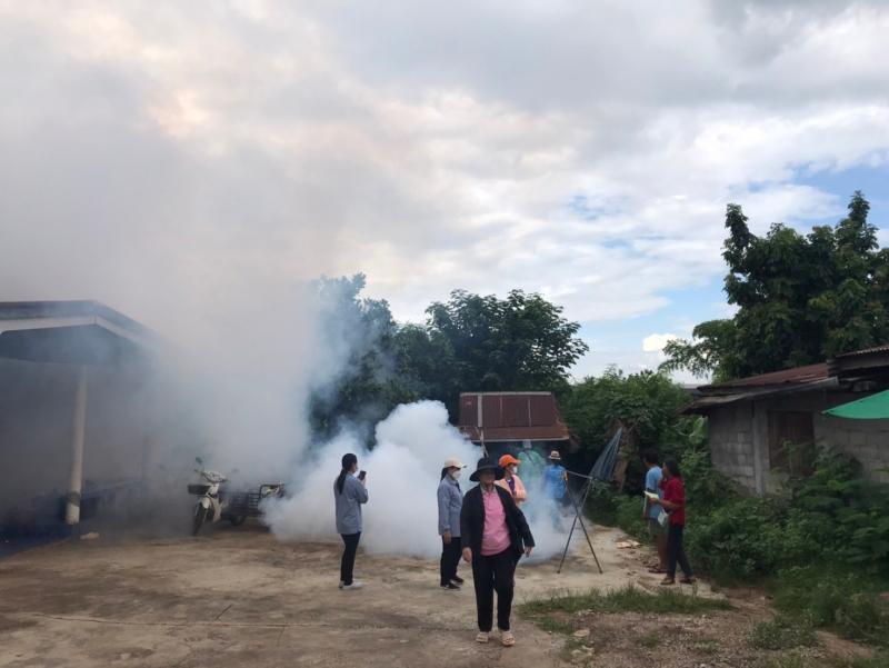 งานสาธารณสุขและสิ่งแวดล้อม ฉีดพ่นหมอกควันควบคุมและป้องกันโรคไข้เลือดออก รัศมีรอบๆ 100 เมตร จากบ้านผู้ป่วย ณ บ้านโนนสว่าง